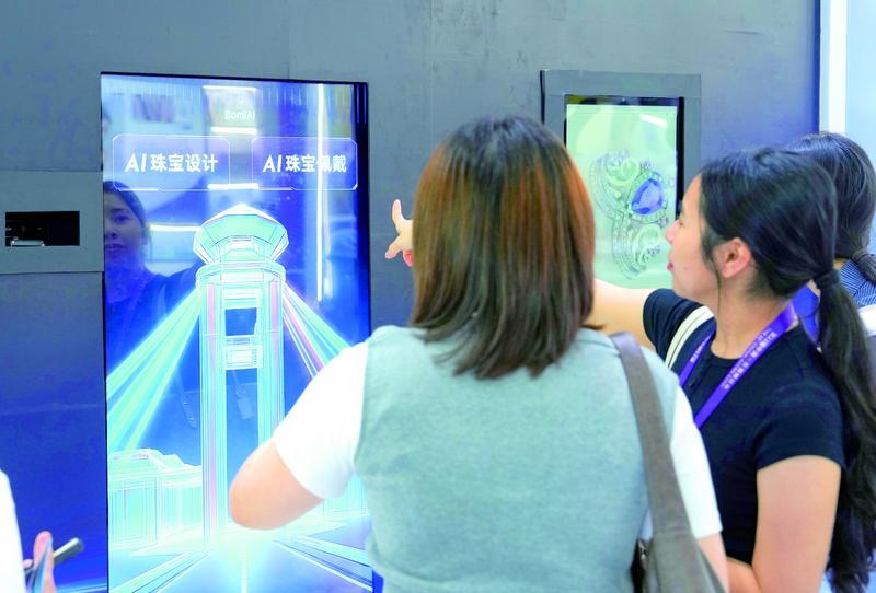 9月18日,在南寧國際會展中心梧州科技寶石人工智能特裝展上,賓客通過AI技術自行設計珠寶飾品并生成穿戴效果。 記者 李燦明 攝
