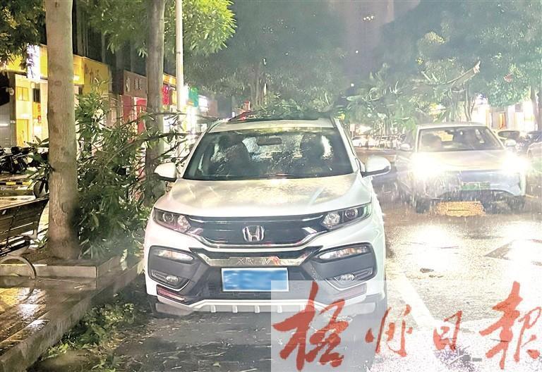 9月24日晚,市區(qū)風(fēng)力明顯增強(qiáng),停靠在迎賓路的一輛小車被大風(fēng)吹落的樹枝砸中。記者 楊揚(yáng) 攝