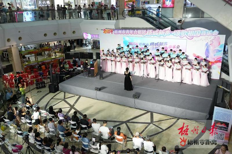 國慶節(jié)前夕,由市群眾藝術館主辦的2025年梧州市青年合唱團“梧城新聲·頌歌祖國”音樂會在旺城廣場舉辦,青年歌手們用歌聲表達對祖國的深情祝福。梧州日報記者 楊揚 通訊員 吳家茵 攝