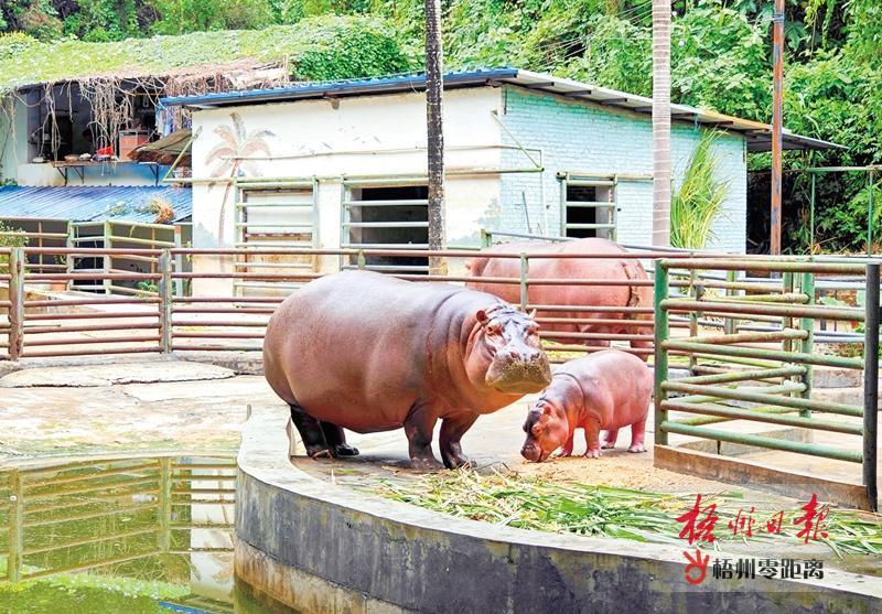今年8月5日,河馬媽媽順利產(chǎn)下一只河馬寶寶,為市動物園再添“新成員”。目前,這只萌態(tài)可掬的小家伙在媽媽的精心呵護(hù)下健康成長。梧州日報(bào)記者 李燦明 攝