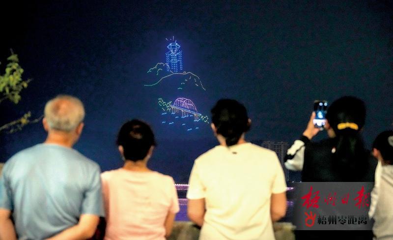 10月29日晚,市民在河西防洪堤觀看無人機光影秀。梧州日報記者 李燦明 攝
