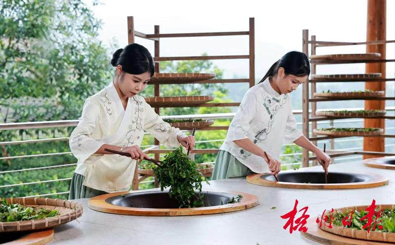 年輕一代非遺傳承人正在學習炒茶技藝。 潘紹珊 攝